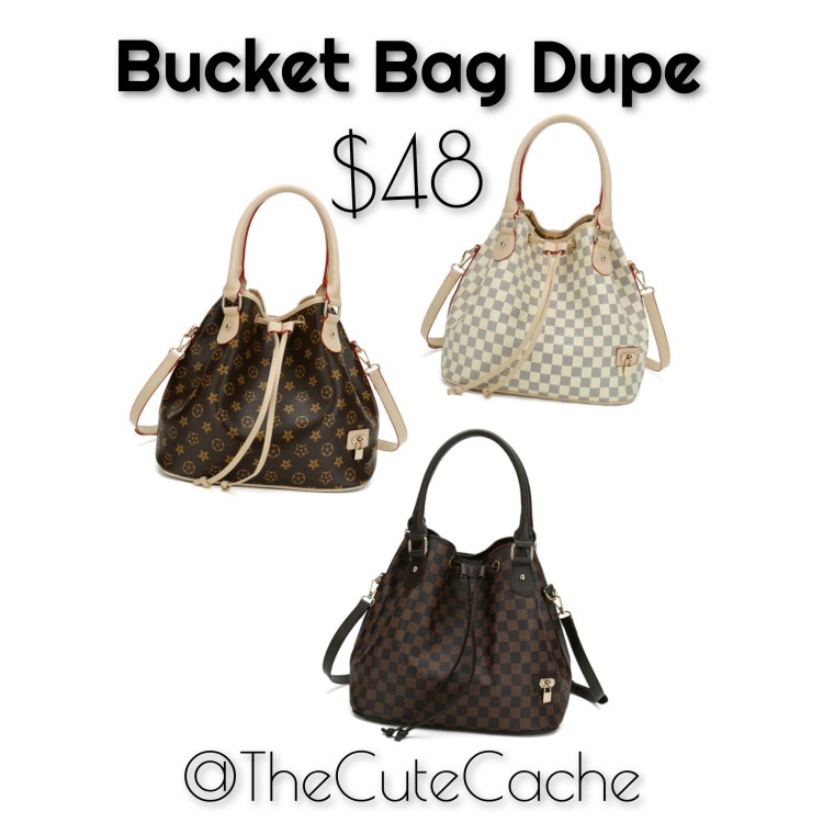 These bags are affordable dupes for the LV Neverfull tote bag for less than $50! Made of PU vegan leather and includes inner pouch. (White/Brown Bags HERE | Black Bag HERE)