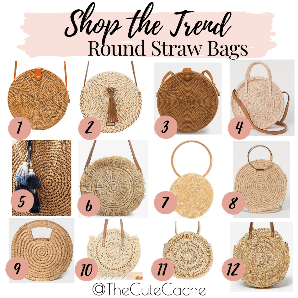 Every summer the straw handbag makes a comeback. This year, a particular silhouette has stood out from the rest: the round straw bag. These super cute bags are everywhere at every price range. Here I have compiled 12 that are both adorable and affordable.